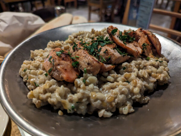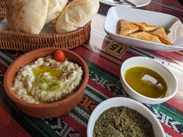 Reggie just ate chips here unfortunately, but there’s bread, falafel, hummus and falafel for all. It’s a popular spot for breakfast if that works better for you.