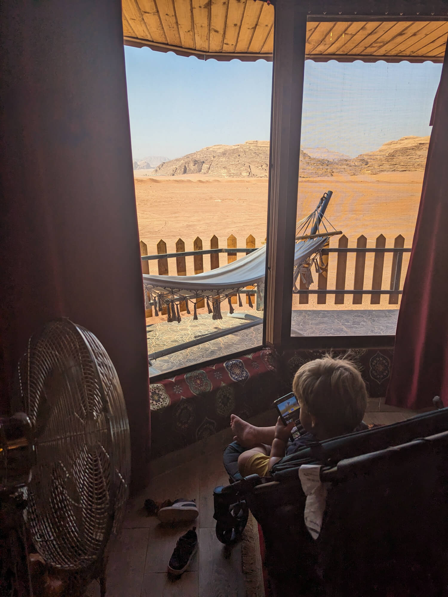 Desert Magic Camp was incredible. I went for the super luxury room, as is my way now. So glad I did. We had a huge room, with just a bed, sofa and chest of drawers in it. This meant there was plenty of space for Reggie to move about and play with his toys, without worrying about him hurting himself or damaging hotel property. Both of us could relax.