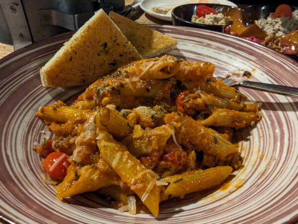 Seeing as we wanted some brunch, and needed to be back for our taxi to Wadi Rum that afternoon, we got a taxi back to Petra, rather than wait for the bus. It wasn’t much.