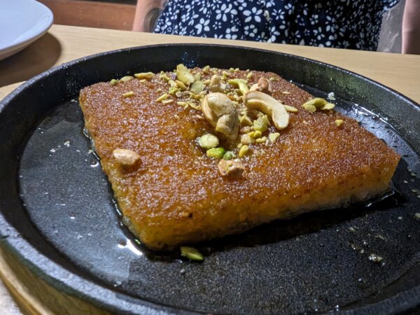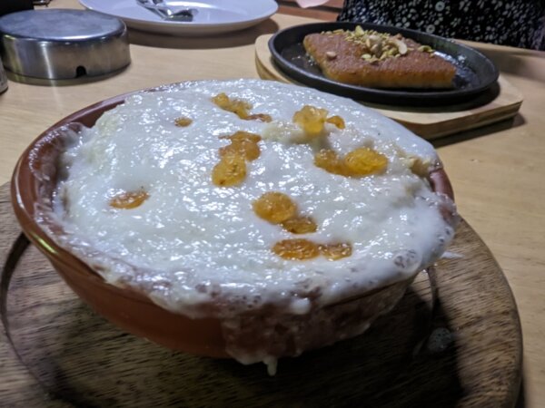 We went for it with the desserts here – Um Ali Bread Pudding, the local Knafeh, and a fried banana for Reggie. Along with a glass of local wine each too. It was a very relaxing evening – my boy was happy, so I was happy too.