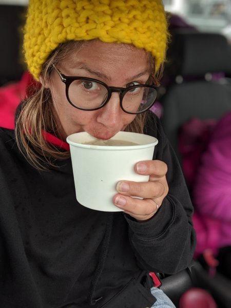 I was determined to use the camping stove and toastie maker I’d bought and so after managing to find an open shop at the terminal, we bought some bread and cheese. Unfortunately the wind was blowing the flame so much it didn’t cook, and so we had dry cold cheese sarnies for breakfast.