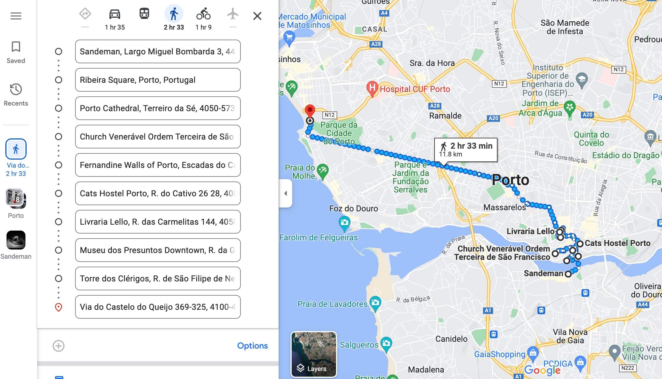 Map of the best things to do in 3 days in Porto