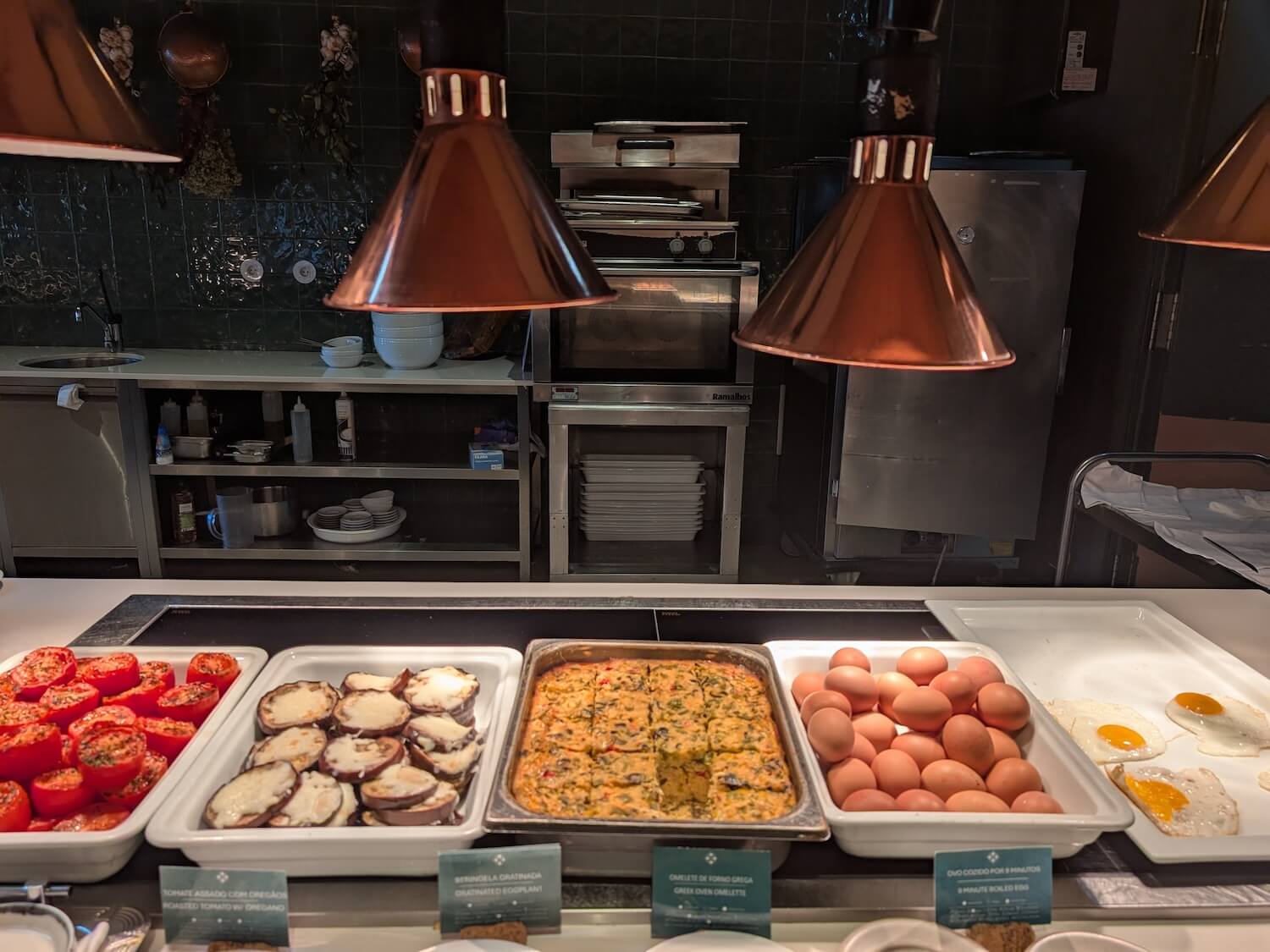 There was plenty of choice, and everything was lovingly made. There was sparkling wine, freshly made omelettes and a wonderful view over the pools – what more could you possibly want?