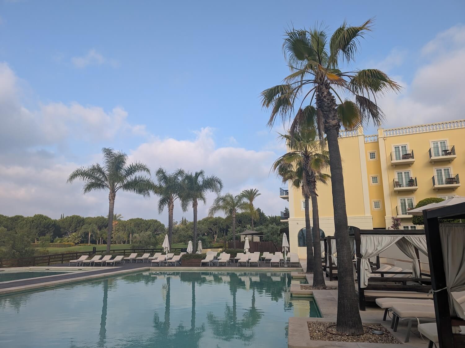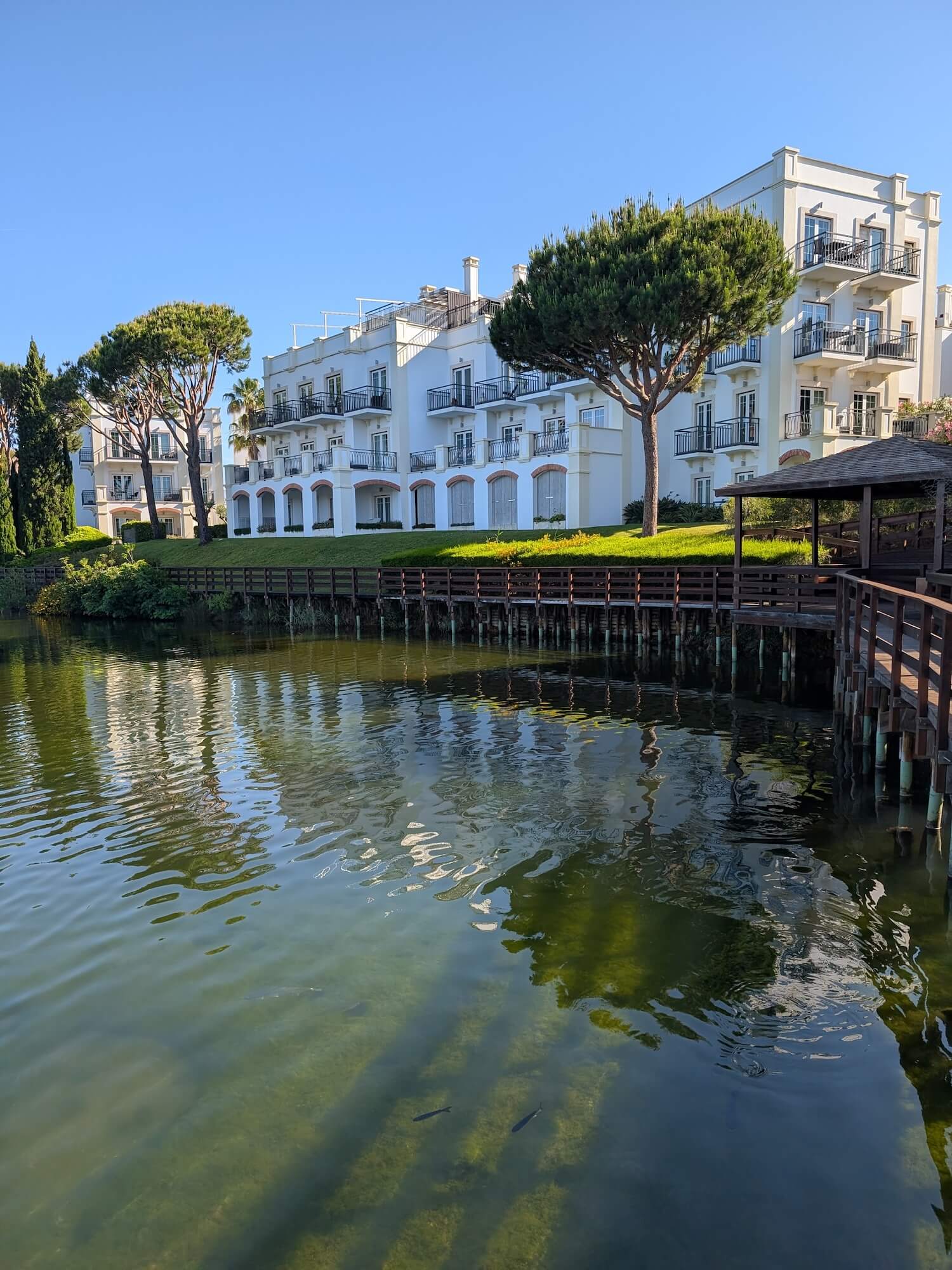 The grounds at Domes Lake Algarve are lovely – manicured gardens, palm trees everywhere and an actual lake in the middle of it all. There’s even a little wooden walkway over the water so you can wander around for a morning walk, without leaving the hotel.