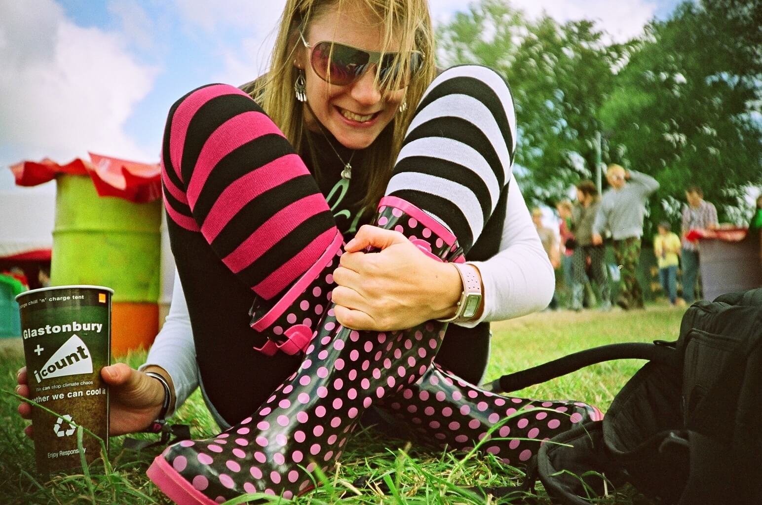 If you must wear wellies, get gel insoles. Spend some cash, get decent ones. The first year I went it rained on the Saturday, and I was so pleased to be able to do the Glastonbury-Welly thing… until after a few hours in them, my feet ached, and all I wanted to do at midnight was go home. Last year – double gel insoles, and I was good all week.