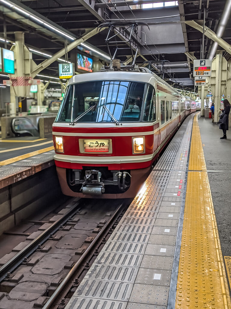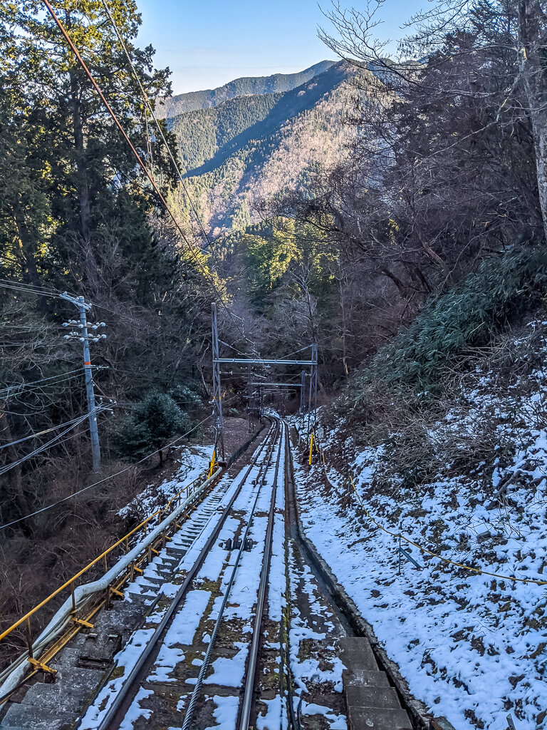 You’ll arrive into Gokurakubashi Station, which is the end of the line. Get off, take a picture of the cool train carriages, and then jump on the funicular up the mountain.
