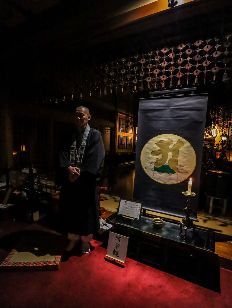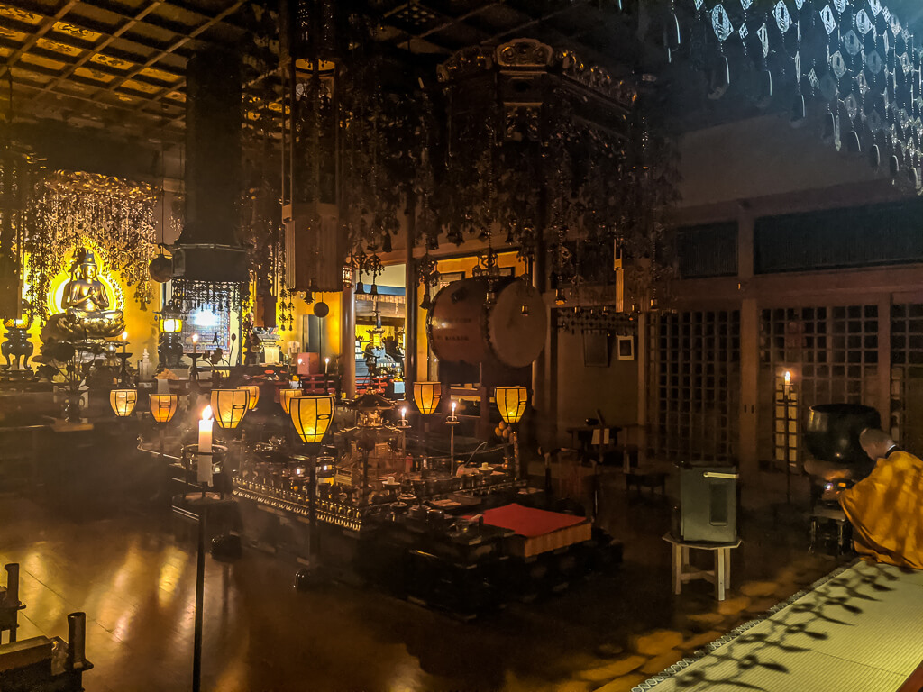 I had actually done a Japanese meditation class before, but that room had been a simple classroom. This was a textbook temple, with gold, candles, flowers and offerings.