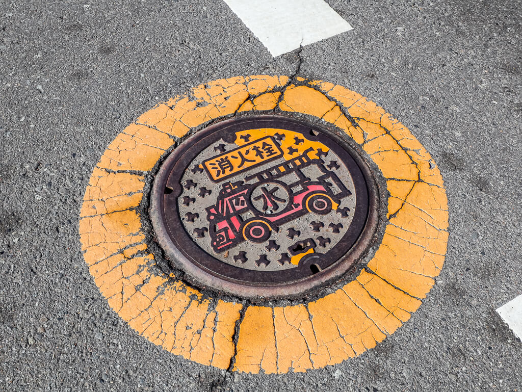 – The manholes of an area in Japan reveal their trade. Mount Koya is known for having a lot of fires, and the fire brigade are celebrated here