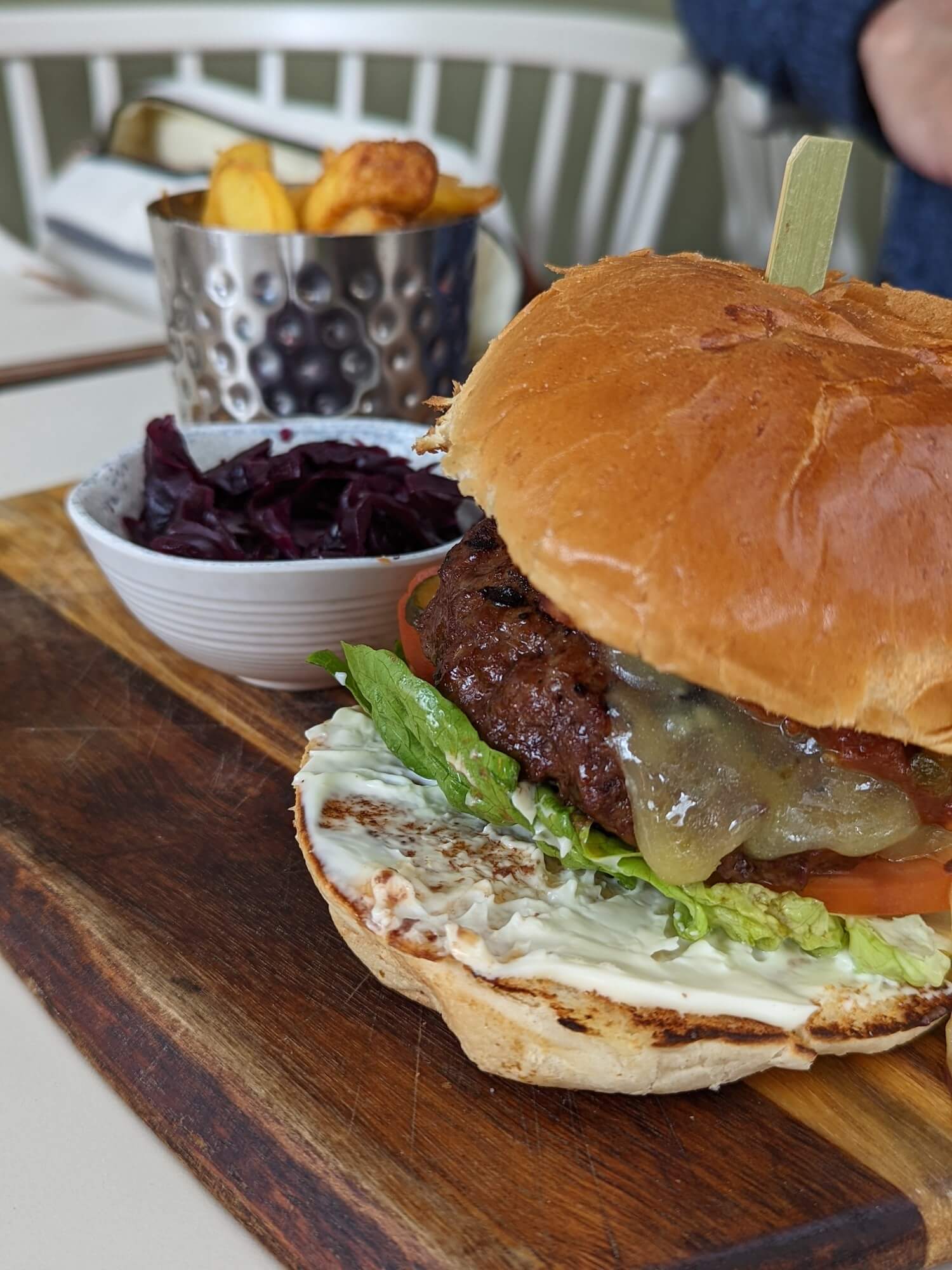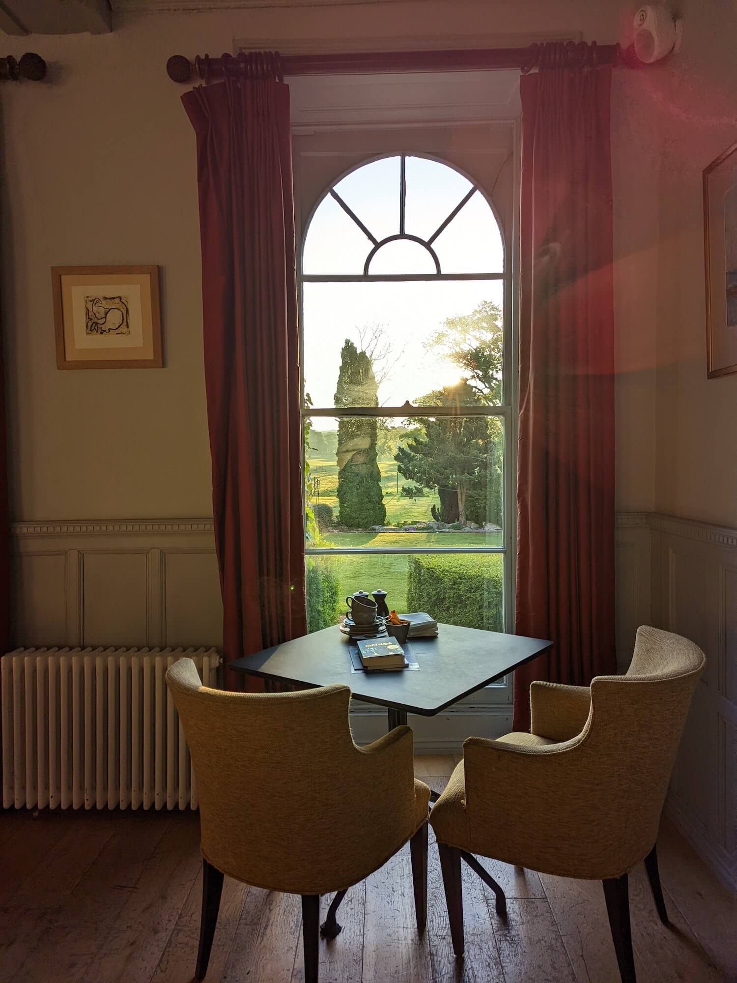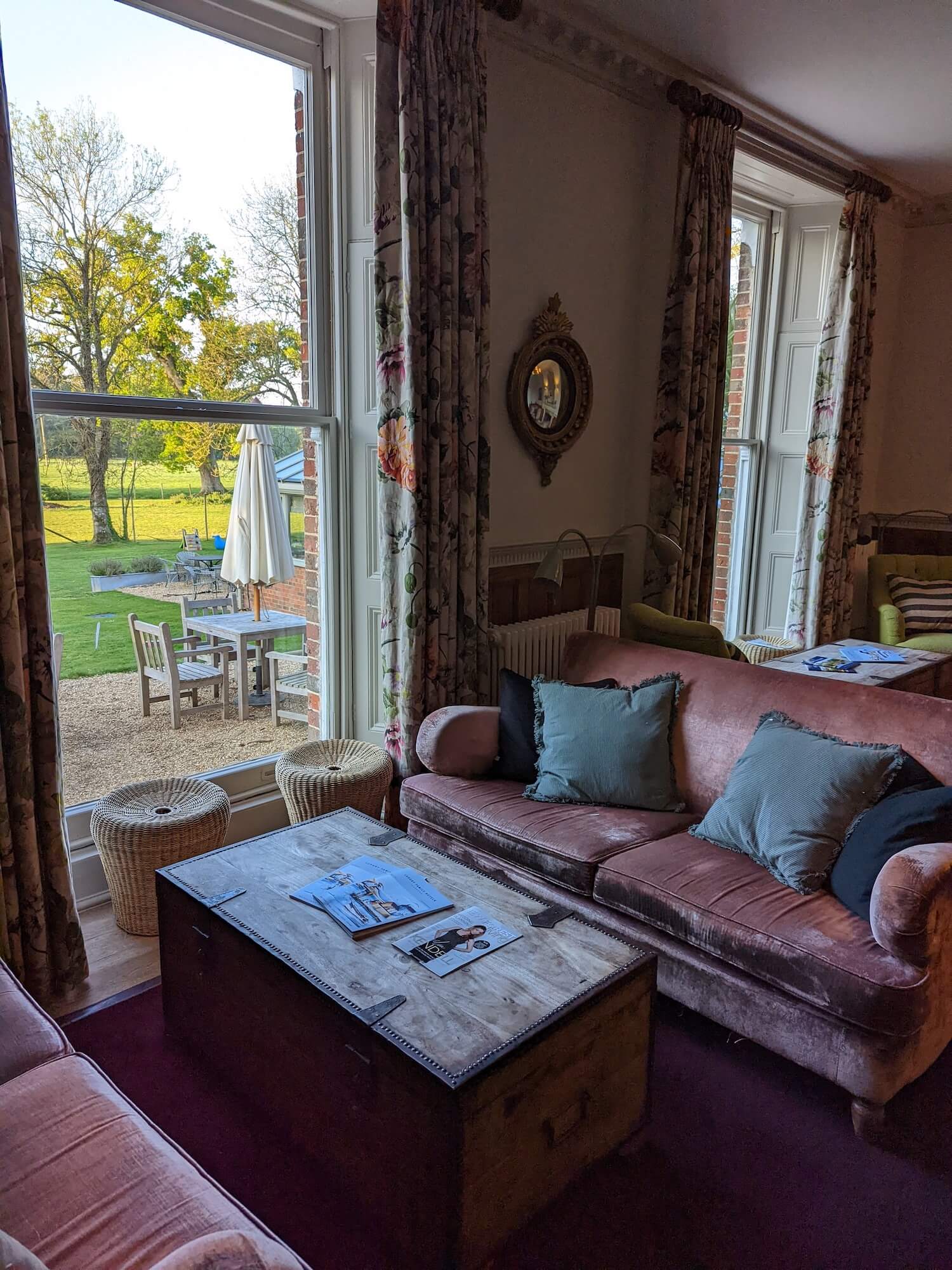 We arrived at about 1:30pm on the Friday afternoon, and promptly ordered a glass of wine and a cider, and fed Reggie his milk right away. We sat outside at the garden tables, overlooking the outdoor swimming pool which unfortunately wasn’t open yet (start of May). You can just charge everything to your room during your stay, which of course makes things easier, but also makes you forget how much you’ve spent till the end!