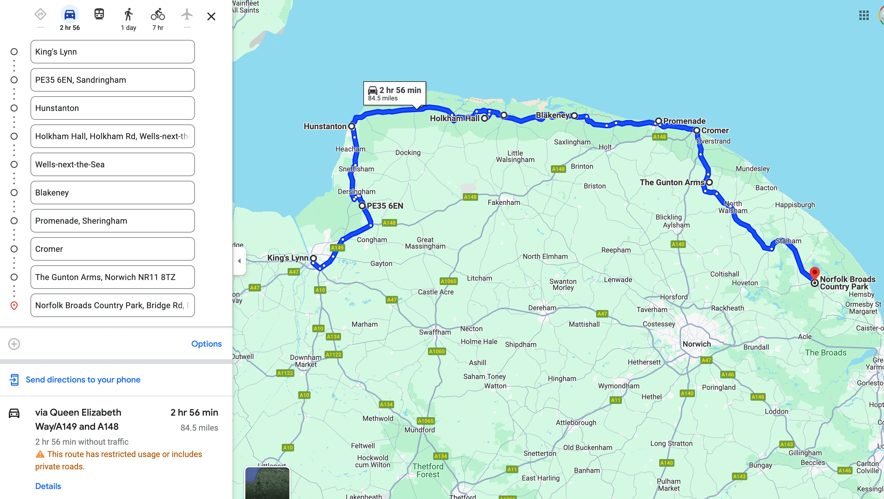 Click to see the map of this North Norfolk road trip