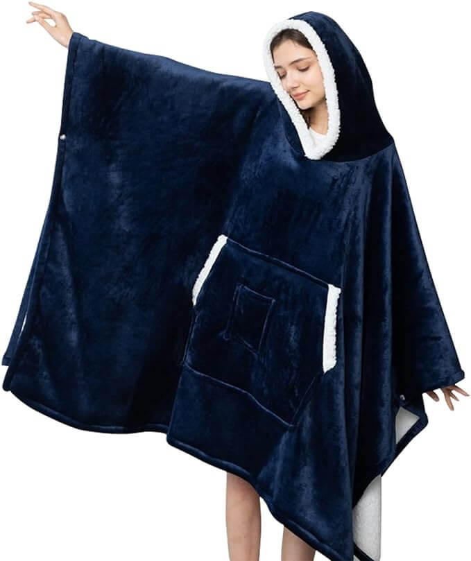 There’s two different sizes for kids and adults, with the idea that it won’t drag on the floor as you walk around. A hooded blanket makes it so much easier to carry and keep a hold of. There are also a few different colours and patterns to choose from, to suit your taste. Have a look on Amazon for the different designs.