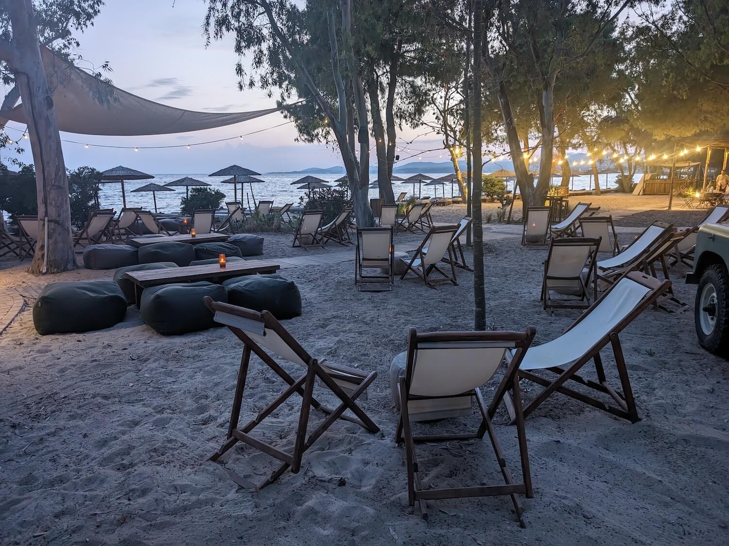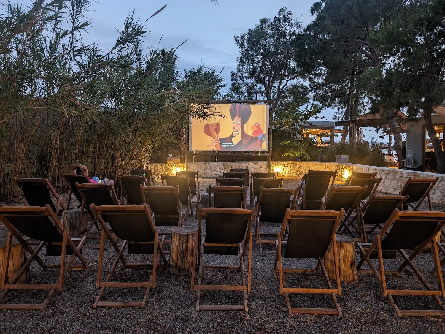 One of the best things about Ergon Beach House Restaurant was the variety of things to do there. We obviously ate at the restaurant, but there was also a food truck doing pizzas if you’d rather, there were sun loungers and deck chairs to relax on, a DJ, and a Silent Cinema (showing Aladdin when we were there).