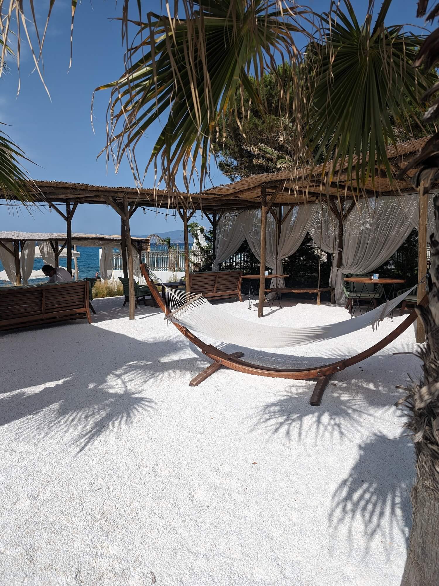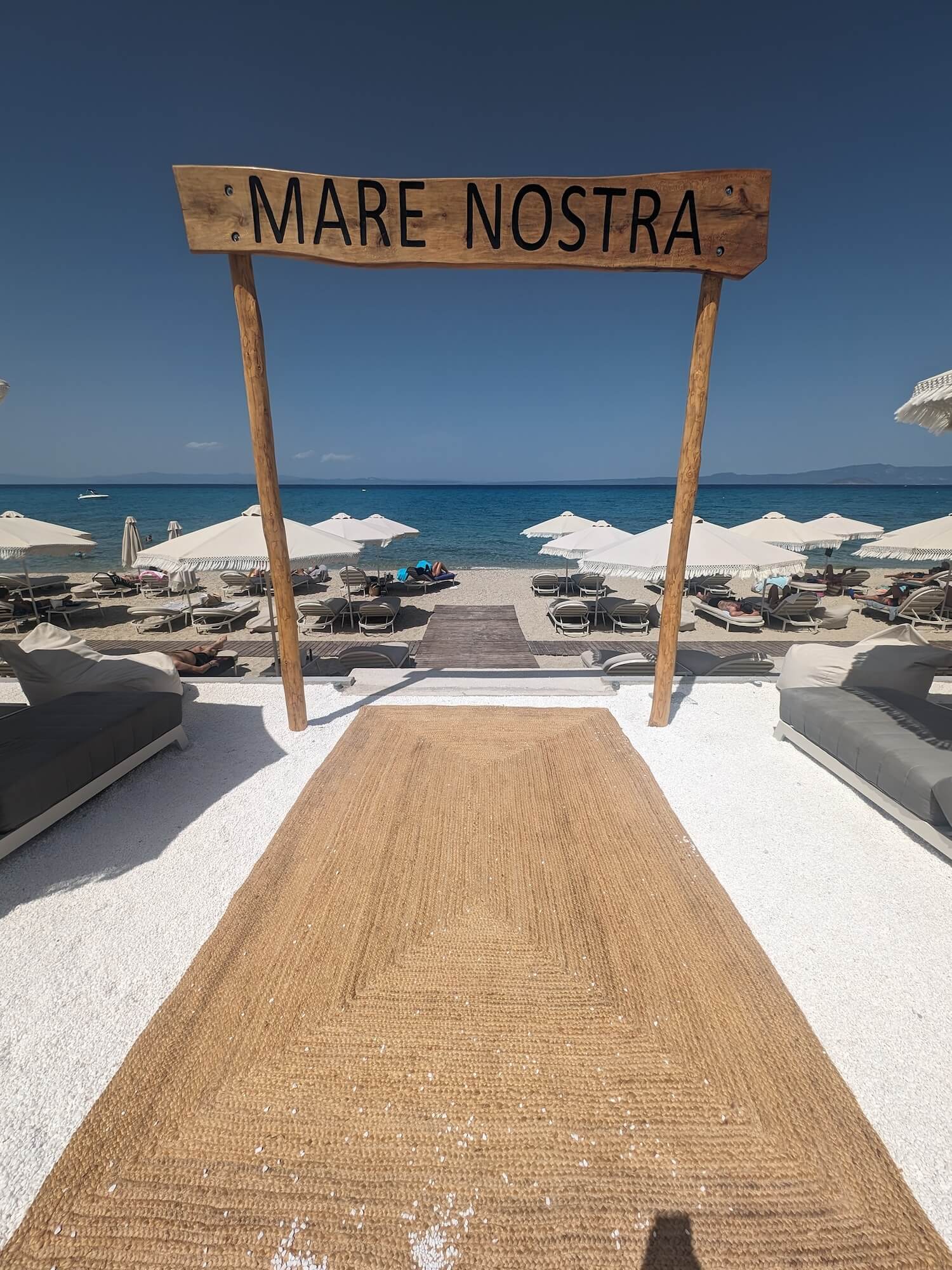 Mare Nostra is one of the one of the famous beach bars in Kassandra. Just turning that corner from the car park and seeing the chairs, hammocks and sun loungers set out was pretty special. Mare Nostra is exactly the kinda place I want to be when I’m on holiday!