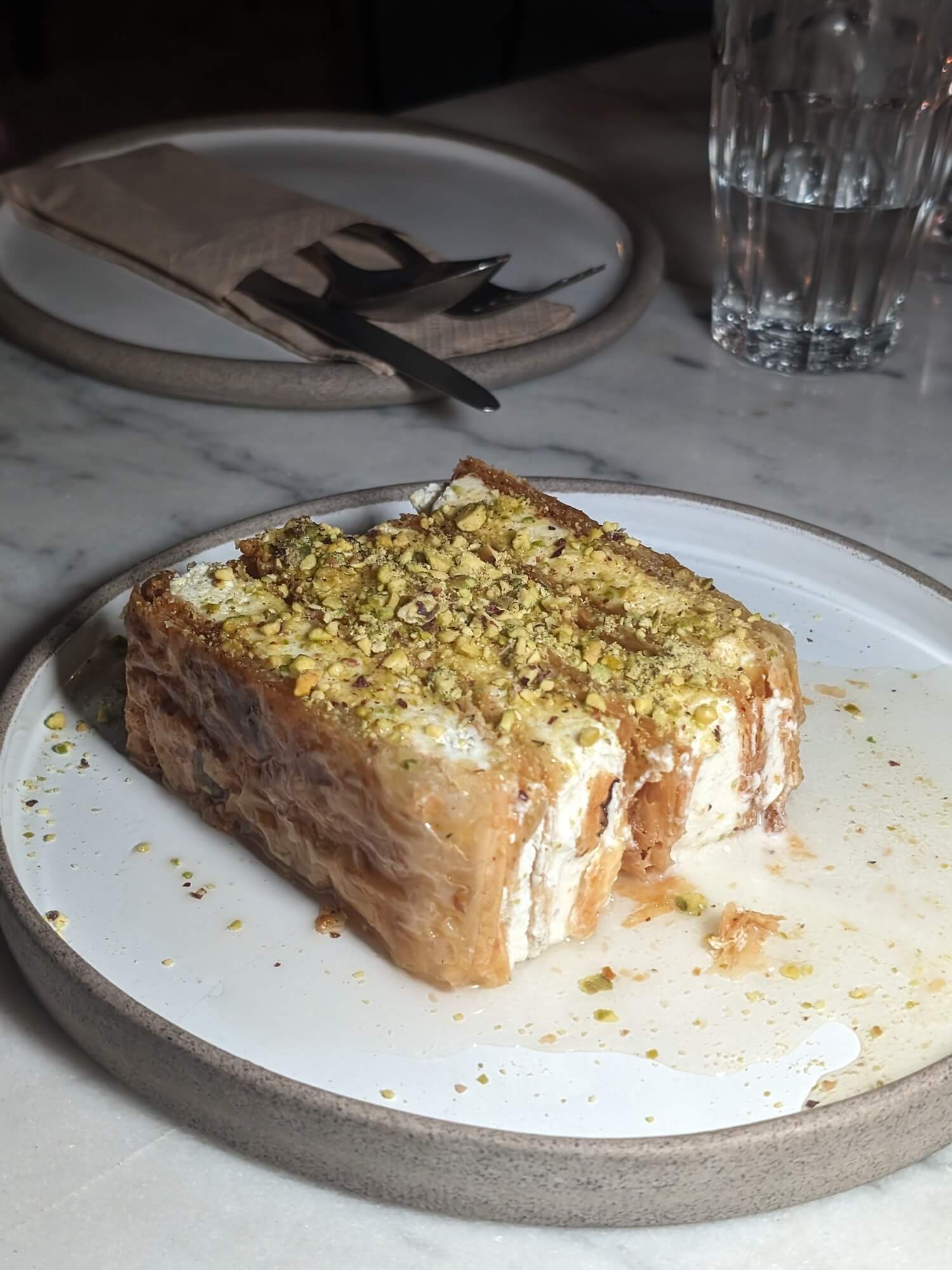 But the dessert. OMG. I mean, I wasn’t going to have it, but good lord, it was SPECIAL. I could not say no, or leave it alone. Layers of pastry with lemony cream – unbelievably delicious.