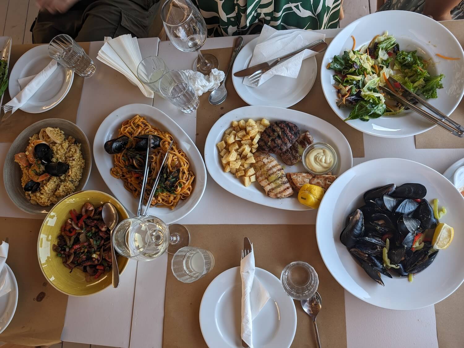 We arrived just in time for sunset, so spent the first 15 minutes just watching the orangey hues from the beach and pottering around, before finding our table.