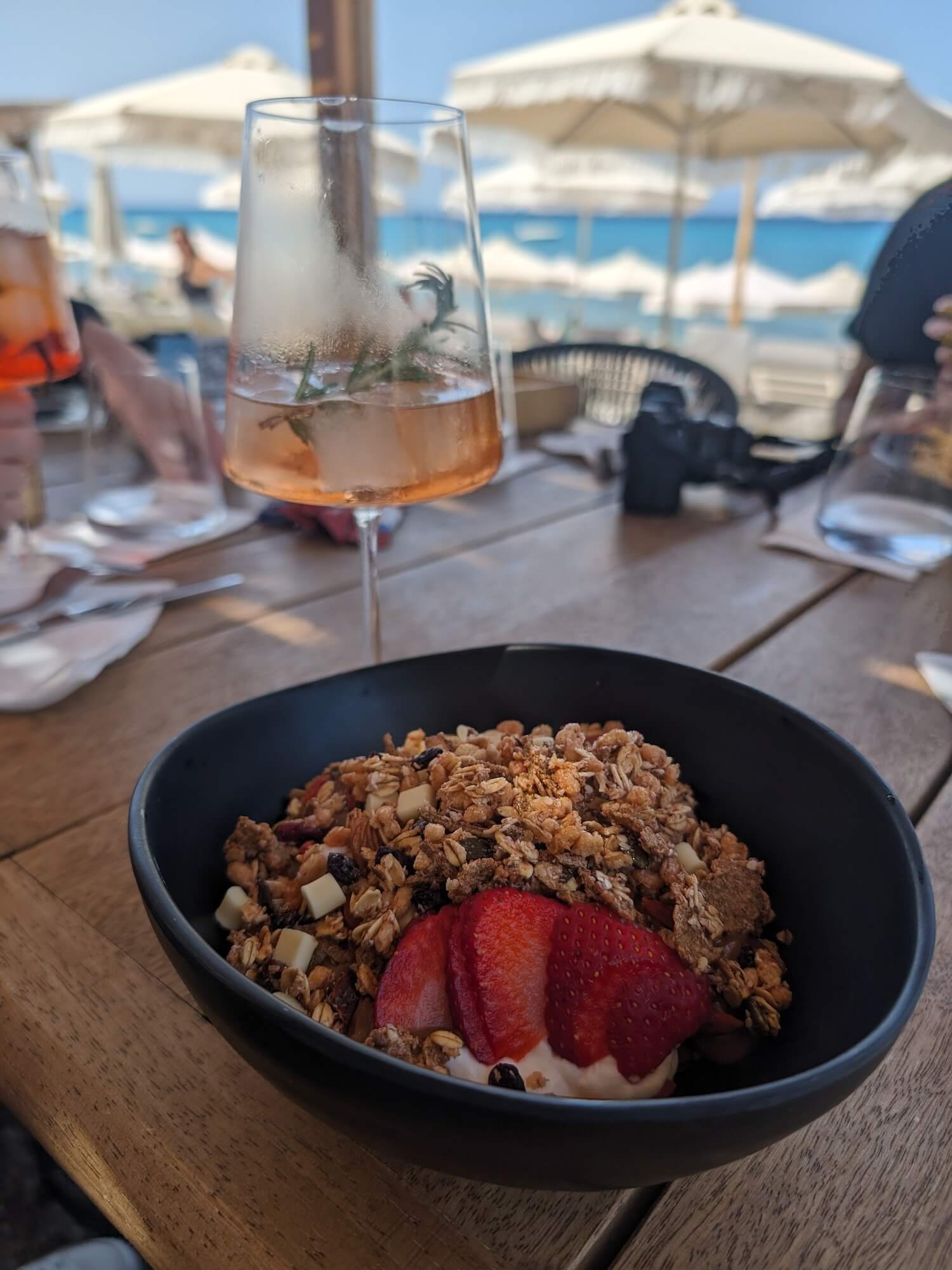 Unfortunately the weren’t doing the restaurant menu, which was sad seeing as I had my eye on the ceviche. Instead, being our first day in Greece, I ordered the Greek yogurt for lunch, with a Chandon Garden Spritz on the side. I’d never actually heard of that drink, but hjave just found it on Waitrose.com – it was lovely and refreshing, I’m going to invest.