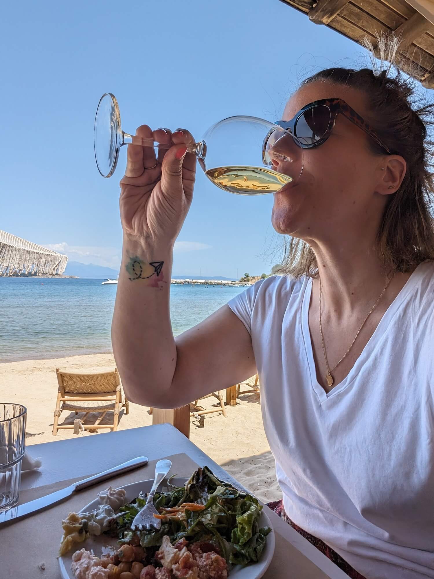 At Akroyiali Seaside Taverna in Olympiada Village in Halkidiki you get to enjoy your lunch pretty much on the beach. I actually had a little lie down between courses on the sun loungers about three steps away from the table – dreamy.