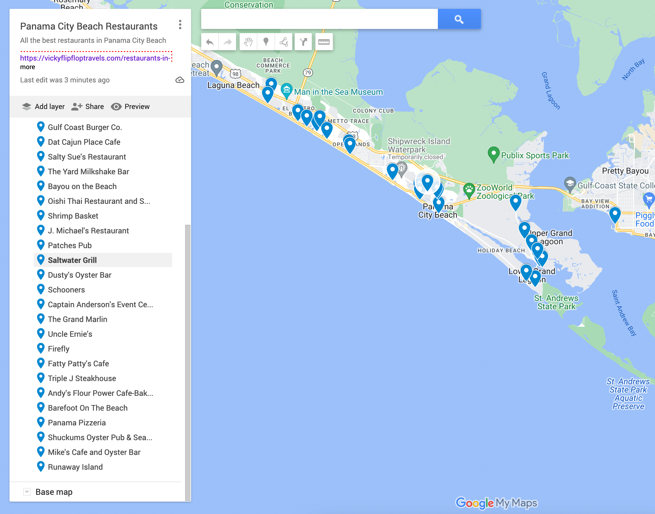Map of Panama City Beach restaurants
