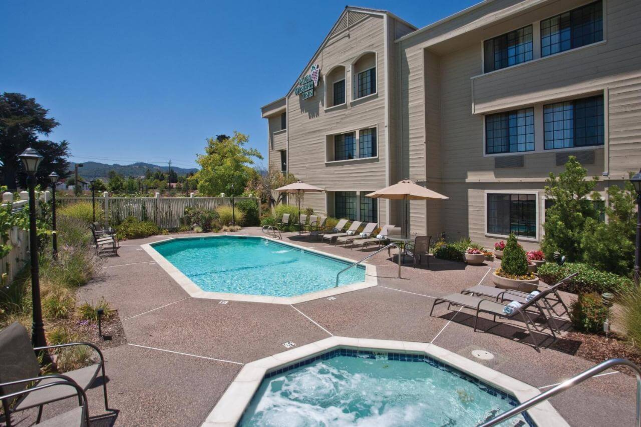 Set in a quiet country atmosphere, Napa Winery Inn offers a seasonal outdoor pool and serves a daily hot breakfast. The Napa Valley Wine Train to St. Helena is 10 minutes’ drive away. Numerous Napa Valley wineries are within 16km of this hotel, and it’s easy to book onto a hot air balloon ride nearby too. This is a great place to stay in Napa Valley to be near all the wineries!