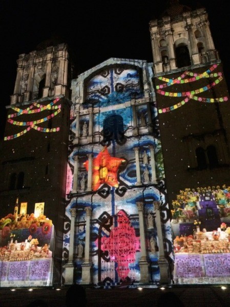 Day of the Dead Festival is fun! It’s a joyous, vibrant and colourful occasion for everyone to get involved in. A carnival of death can be difficult to comprehend but it’s a celebration of what the dead have bought into the living’s lives, not a sadness that they’ve gone. During Day of the Dead Festival even the graveyards are fun places to be – and check out the main Santa Domingo Church above, complete with light projections.